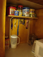 I emptied everything out, and began cleaning. It was very discouraging though, especially because the bottom dipped down... and then there was the massive hole for piping. How could I store anything down here?